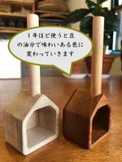 使い込んでいくにつれて珈琲豆のオイルが染み込み,味のある色に変わっていきます。(4枚目の写真)