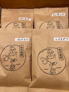 エチオピア,グアテマラは中深煎り,コロンビア,タンザニアは深煎りです。